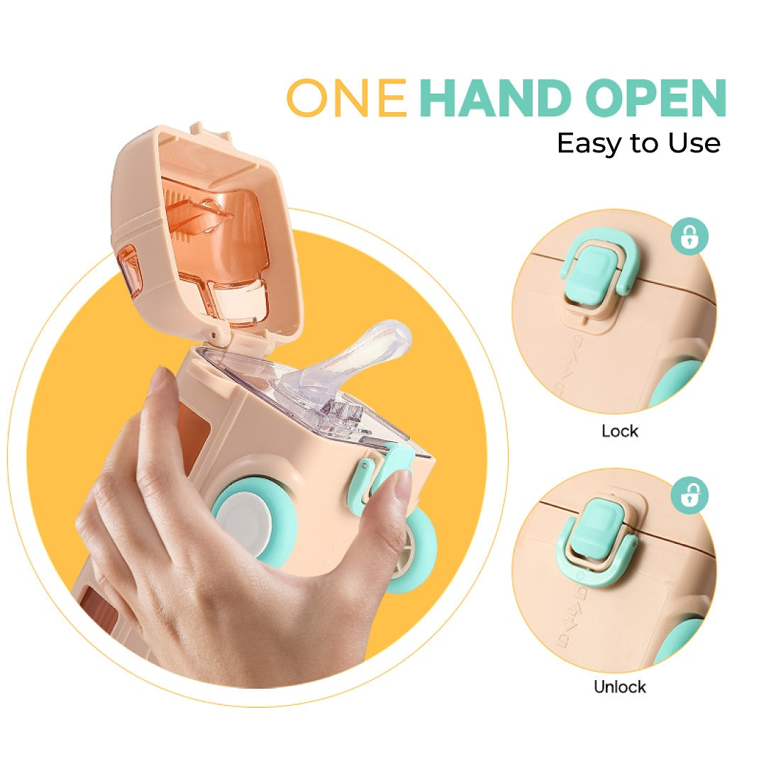This fun car-shaped water bottle is perfect for kids, featuring a soft straw, safety lock, and carrying strap. With a 350ml capacity and vibrant colours, it keeps kids hydrated on the go